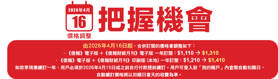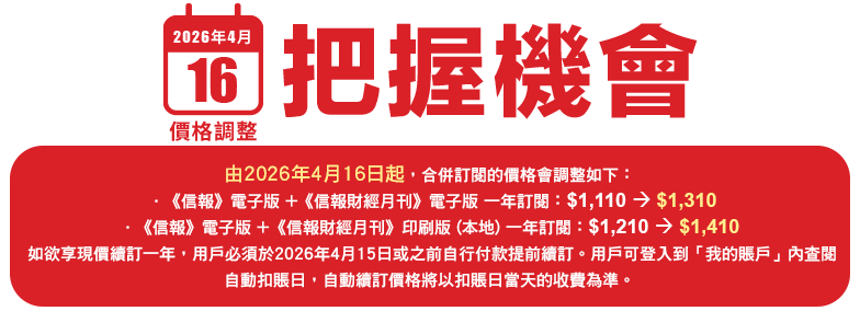 信報簡介 | 服務條款 | 私隱條款 | 免責聲明 | 廣告查詢 | 加入信報 | 聯絡信報